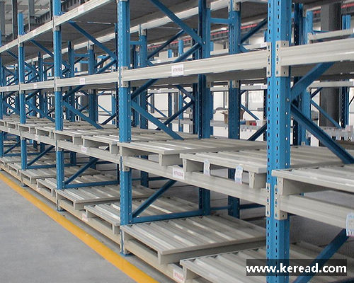 三、重型货架。横梁货架:由立柱片(由2个立柱和横斜拉杆组成)、横梁组成,承重在1000-3000kg,高度可达8、9米,配合叉车使用可提高工作效率,在仓储物流行业有较多运用。